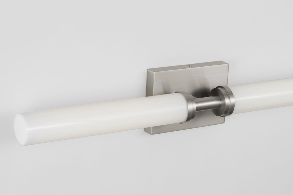 The Coles 30" Vanity offers a streamlined LED solution with dual cylindrical white glass diffusers and a metal center mount for balanced, even illumination. Designed for vertical or horizontal orientation, Coles integrates seamlessly into bathrooms and powder rooms where uniform light and minimal profile are essential. Available in four finishes and three sizes to suit a range of applications. Ideal for entryways, patios, and exterior walls.