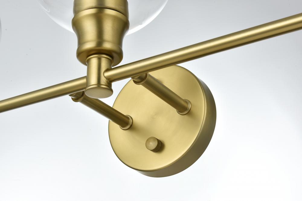 Add a touch of contemporary style to your space with this versatile wall sconce. Available in satin gold, chrome, black, and brass finishes, this fixture complements any decor, from modern to classic. The wall sconce showcases a pair of glass globe shades, available in clear or frosted white that deliver a bright, ambient glow, whether mounted upwards or downwards. Crafted from durable iron and glass, it combines robustness with a sleek style. The clean lines of the round backplate and horizontal arm create a modern yet timeless look. Designed for hardwired installation, this fixture uses E26 standard sockets, allowing you to choose the perfect bulbs for your desired ambiance. This wall sconce is ready to elevate any room with its unique combination of functionality and contemporary design.