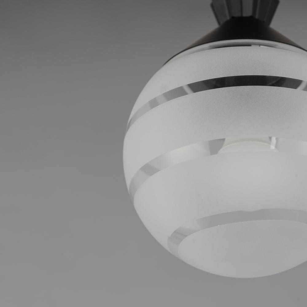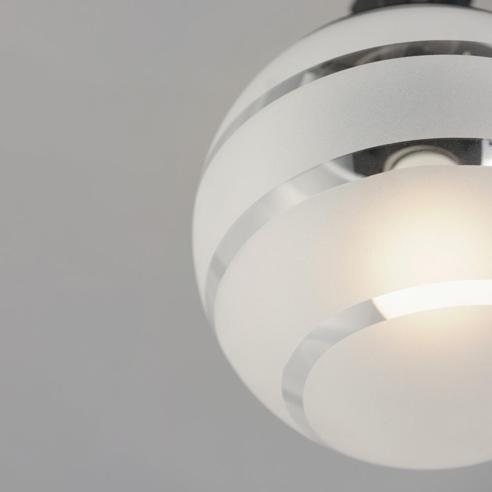 A playful grouping of globe and tapered cylinder glass shades feature a distinctive striped pattern as they are held from crown-like fonts. Spiritedly vintage and excitingly modern, this fashionable series of outdoor rated sconces and pendants connects sty