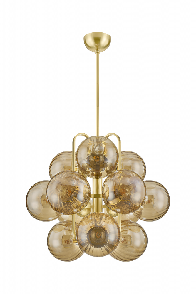 Like grapes on a vine, a cluster of glass orbs perch along the antique-inspired frame of Cronus. The ribbed, light bronze glass emits a warm glow, complemented by gleaming Vintage Polished Brass arches. Available as a 1-light wall sconce or 12 or 21-light chandelier, Cronus infuses a living or dining space with old Hollywood glamor.