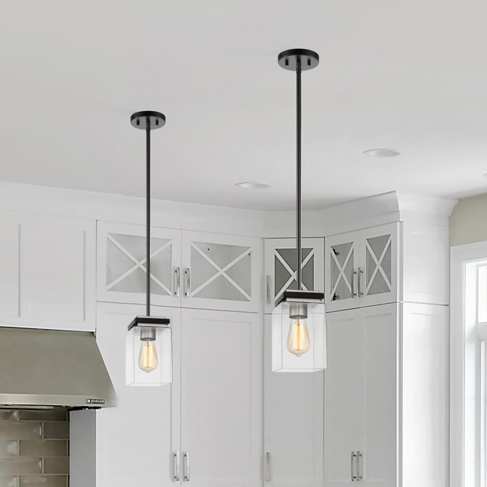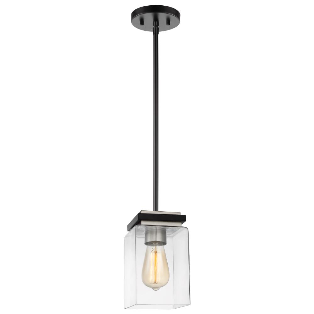 A combination of glass and metal comes together to create the stunning design of the Crossroad 60-7650 mini pendant. The square, clear glass shades showcase the bulbs. The socket and base are finished in brushed nickel to contrast beautifully with the matt