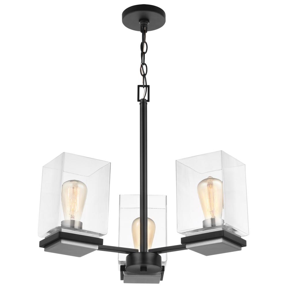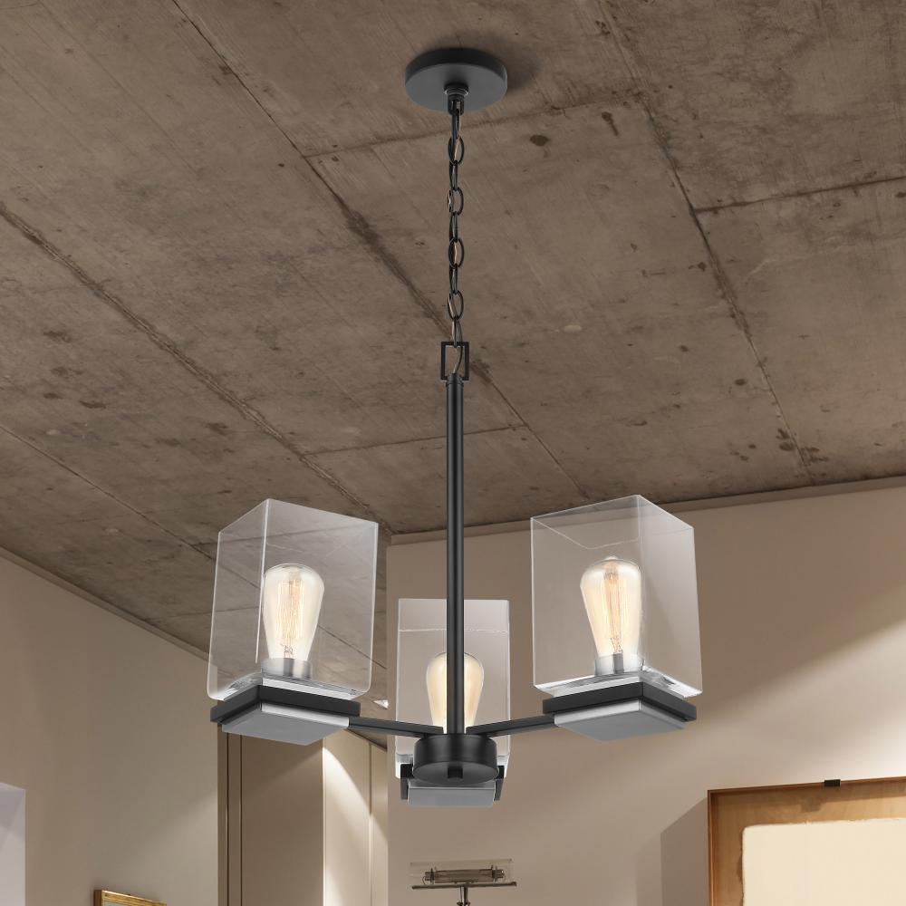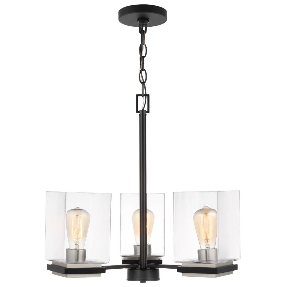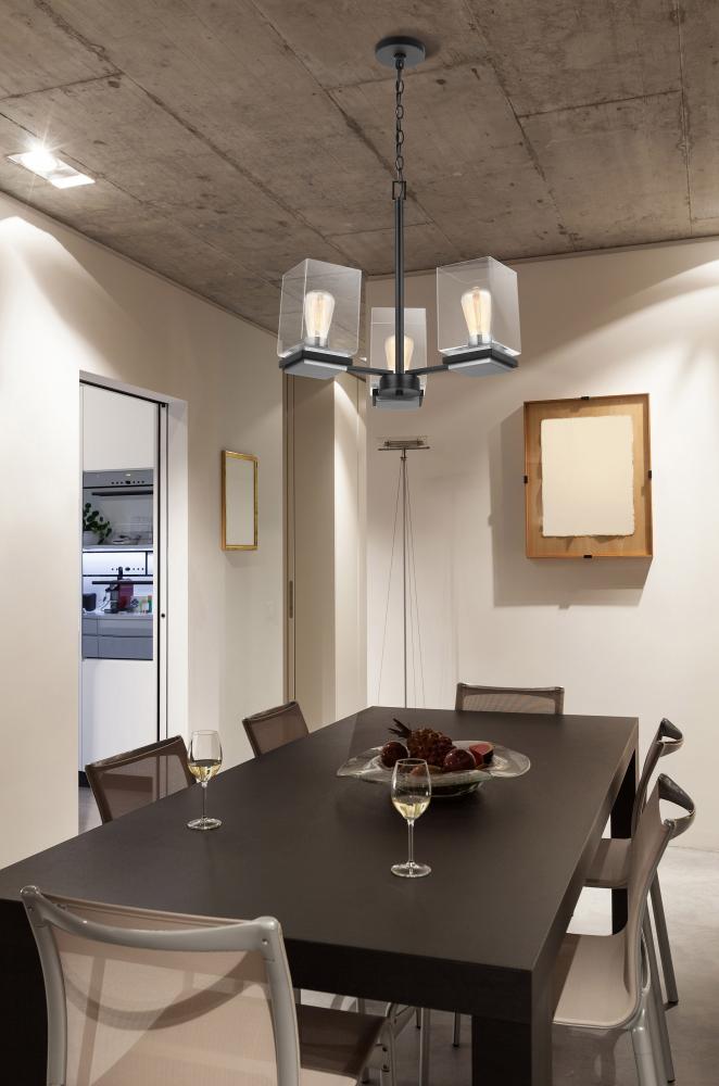 A combination of glass and metal comes together to create the stunning design of the Crossroad 60-7655 chandelier. The square, clear glass shades showcase the bulbs. The sockets and base are finished in brushed nickel to contrast beautifully with the matte