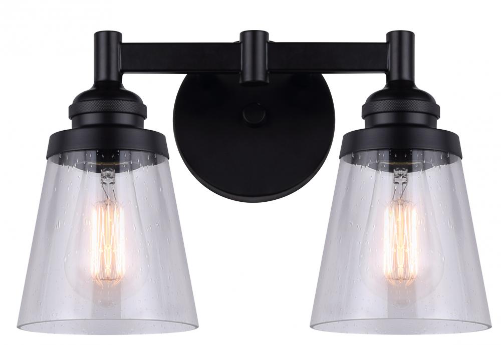 DECLAN, IVL1097A02BK, MBK Color, 2 Lt Vanity, Seeded Glass, 60W Type A, 14inch W x 9.375inch H x 6.75inch D, Easy Connect Included