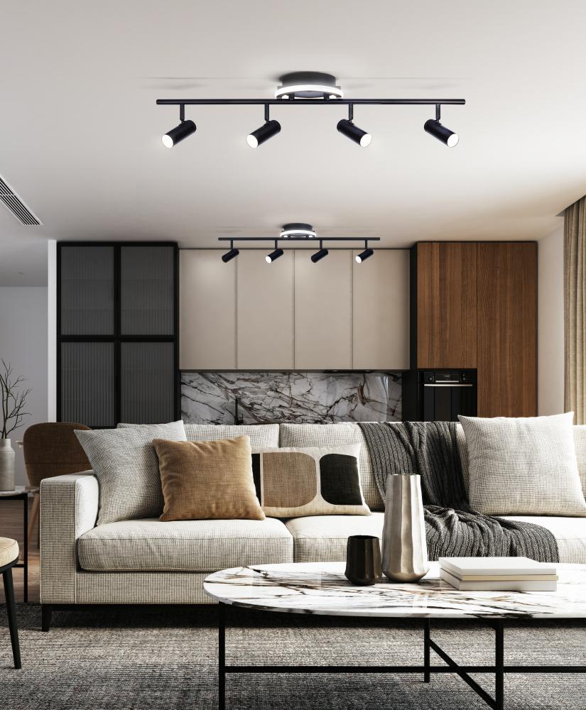 DENVER, LT314A04BK, 4 Lt LED Track or Wall, Silicone Lens + Acrylic, 21W LED (Integrated), Dimmable, 800 Lumens, 3000K Color Temperature, 33.25inch W x 7.5inch H 7.5inch D