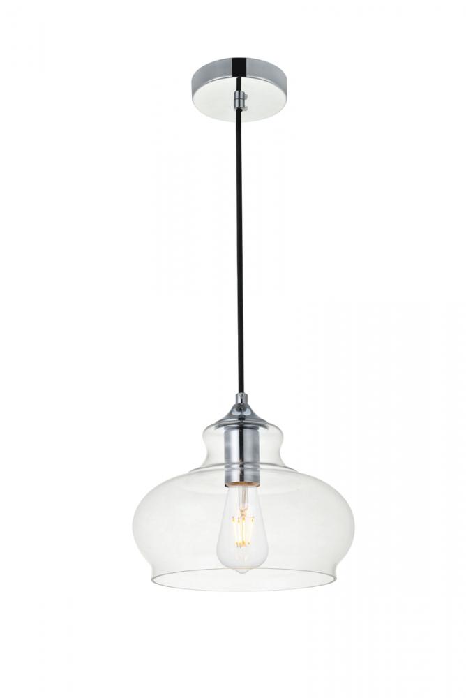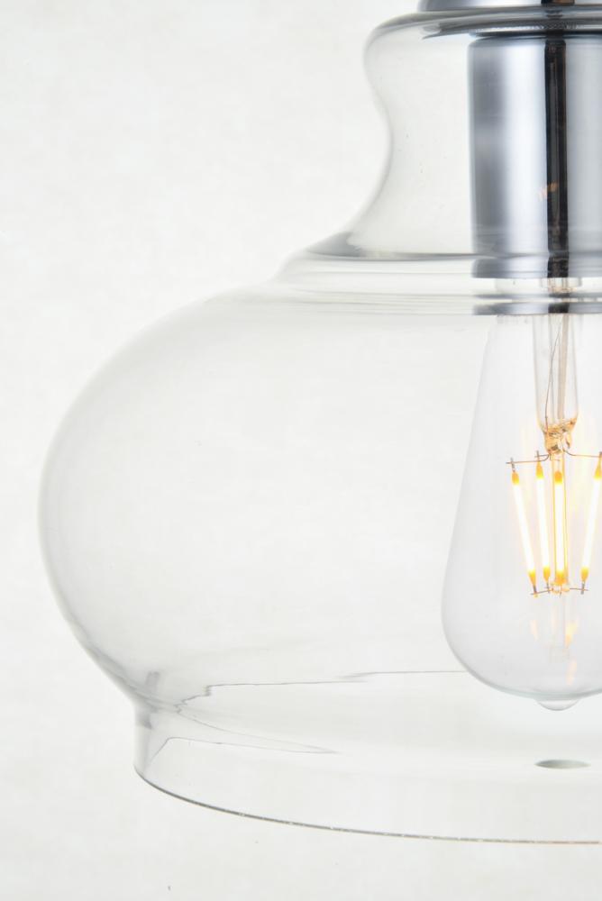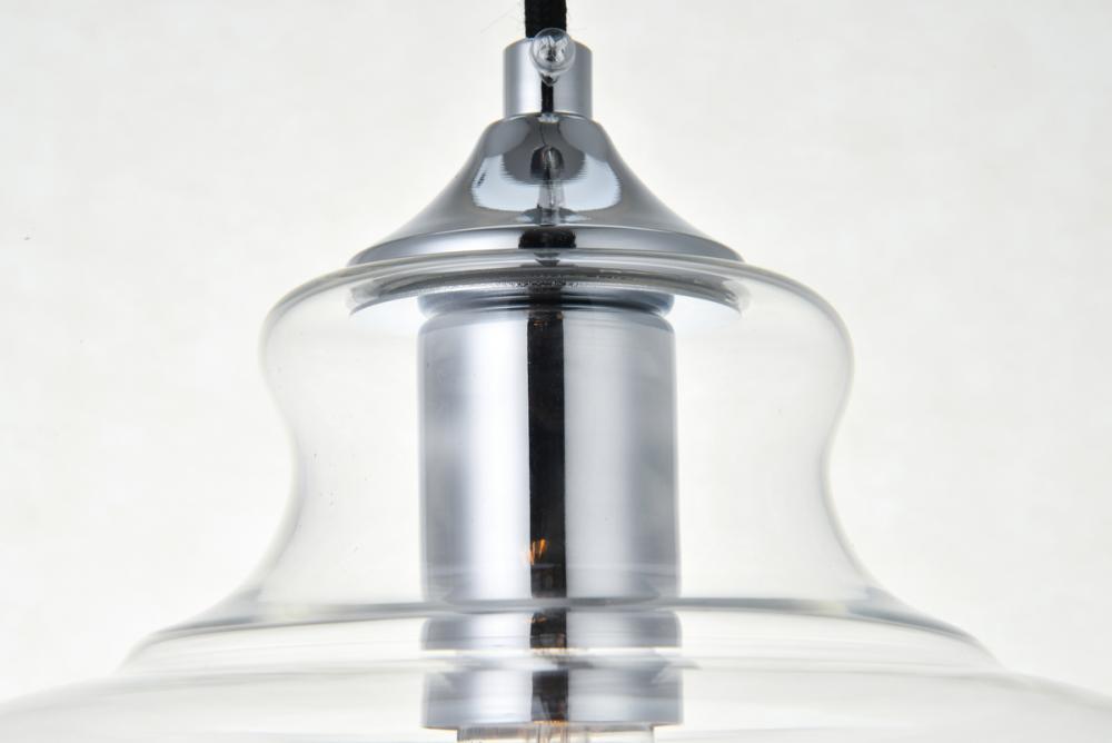 The small, but mighty Destry collection offers sleek pendant lamps that will add a powerful accent to your urban, industrial, or transitional décor. The light’s chrome hardware finish adds to the interest of the piece. Chrome 'top hat' design accentuates the clear glass shade. Each chrome and clear conical shade holds one incandescent or LED light bulb (not included). Brighten your kitchen island, bathroom, entryway, or den with this one-light statement fixture. You may adjust the height to your desired length between 15 and 68