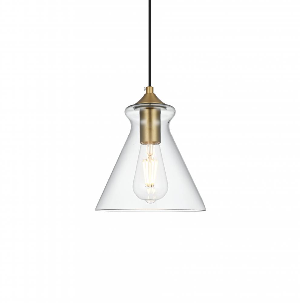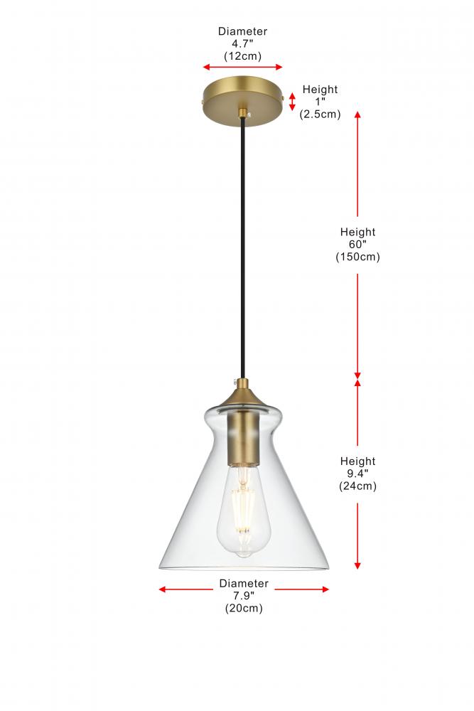 The small, but mighty Destry collection offers sleek pendant lamps that will add a powerful accent to your urban, industrial, or transitional decor. The light's satin gold hardware finish adds to the interest of the piece. Top hat design accentuates the clear glass shade. Each gold and clear conical shade holds one incandescent or LED light bulb (not included). Brighten your kitchen island, bathroom, entryway, or den with this one-light statement fixture. You may adjust the height to your desired length between 15 and 68 inches.