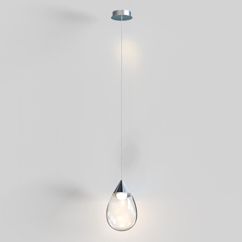 Suspended from slim cords, drops of blown glass encase a recessed LED light source casting light along the thick bottomed glass. Available in Polished Chrome with clear glass or Matte Black with Mirror Smoked Glass, this simple design adds a statement to l