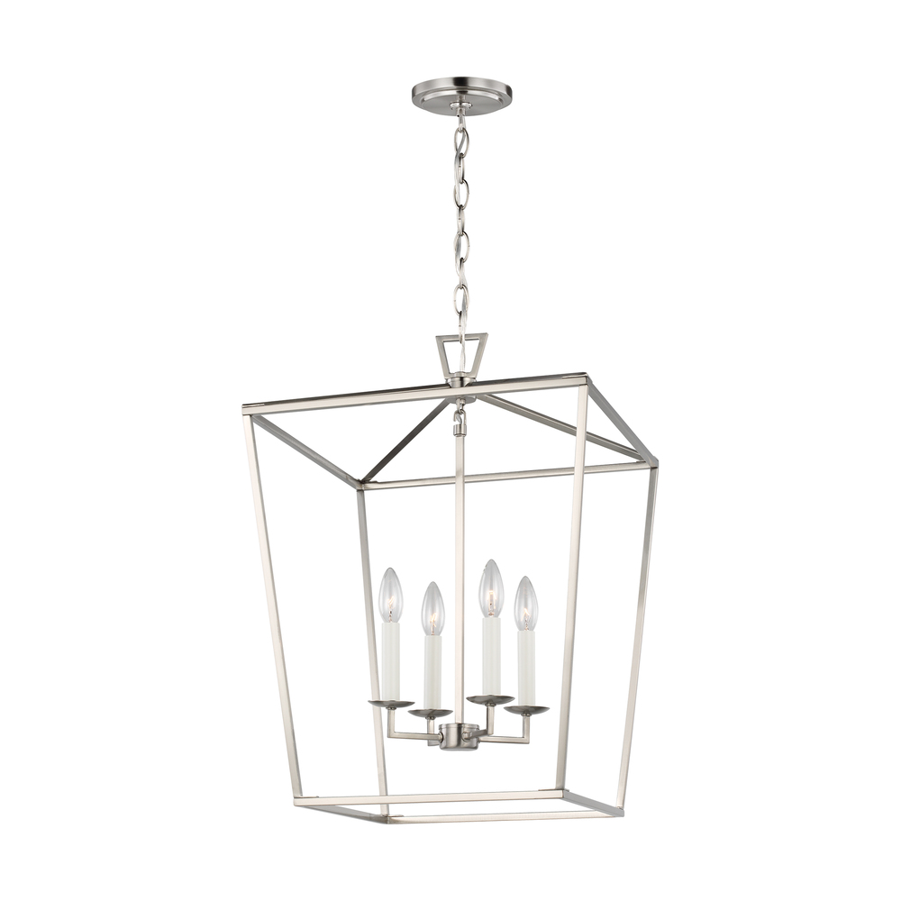 The Dianna four light indoor pendant in brushed nickel provides abundant light to your home, while adding style and interest. The open, airy iron frame of this three-dimensional lantern brings depth and structure to any space.