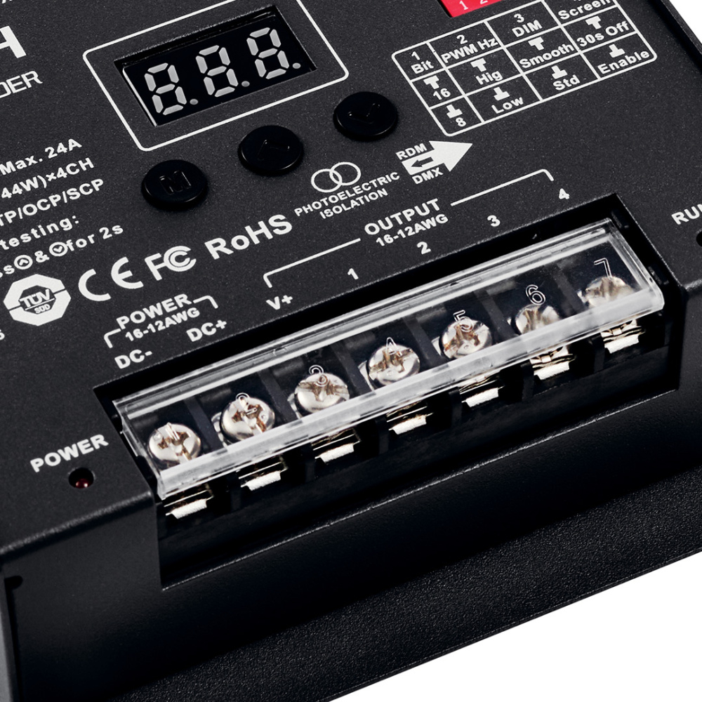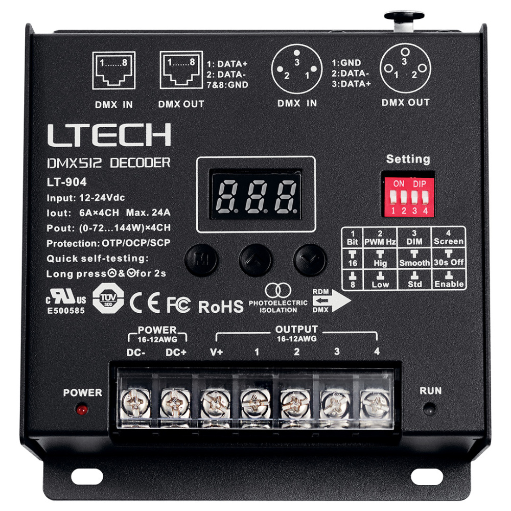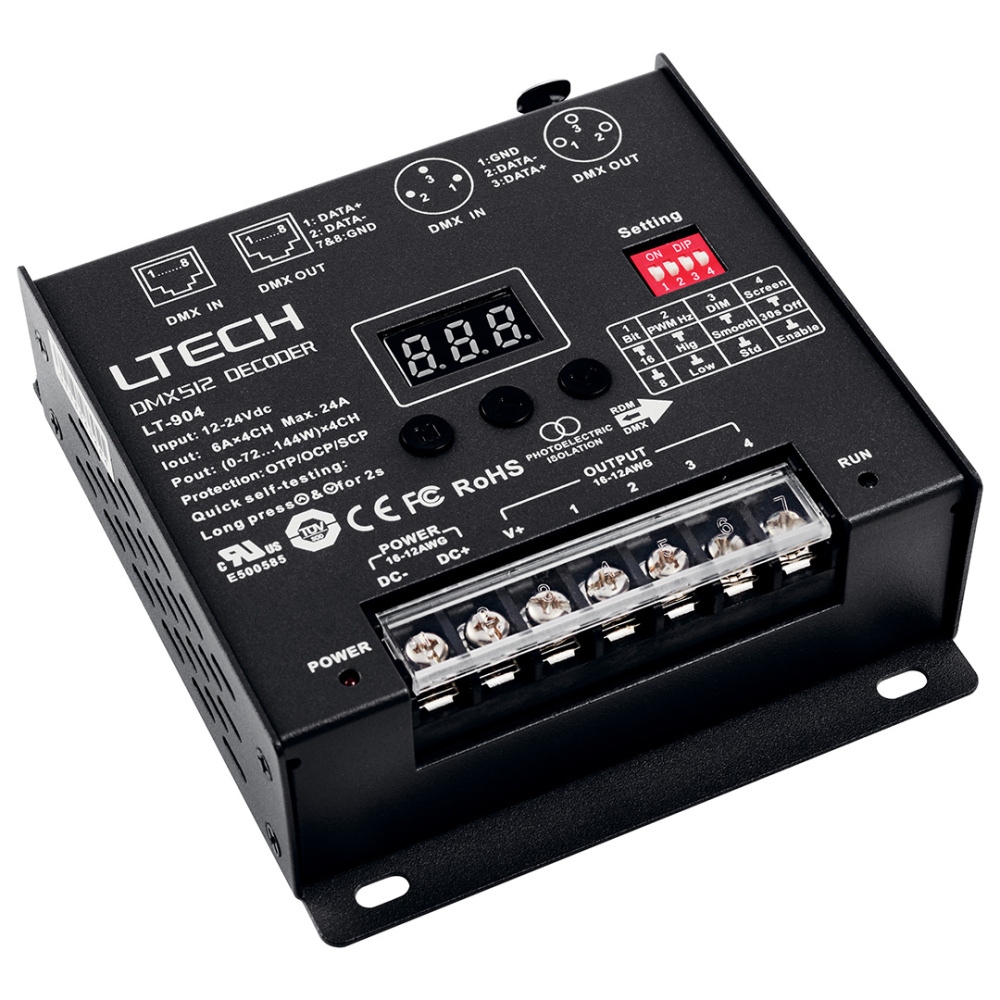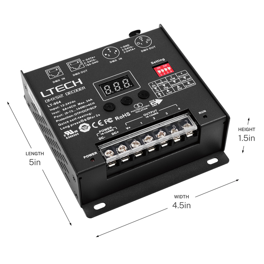 Wireless DMX 512 Decoder is designed to control the CCT tuning of the tape light. Compact and easy to install. Ideal for use with 6T Series COB Tape Light, Tunable.