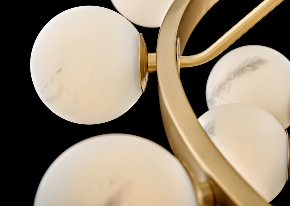 Selene is what dreams are made of. Swirled glass globes dance along the silhouette, providing an enticing, ambient glow and attracting attention in all the right ways. Selene indulges in the details and revels in the spotlight, projecting a strong confidence in modern design.