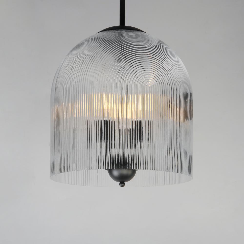 Featuring a concentric, semicircular ribbed glass pattern, this collection offers a blend of familiar design with contemporary flair. The deeply textured glass refracts light beautifully, diffusing glare while delivering ample functional illumination. Meta