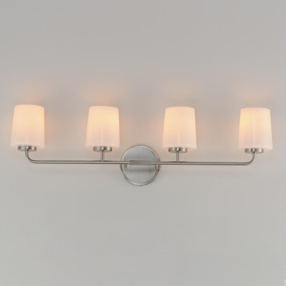 Featuring knurled rod details, this lighting collection brings a modern industrial edge to any space. Available in a range of sizes for chandeliers and two styles of bath vanity lighting, it offers versatility for different design needs. Offered in Matte B