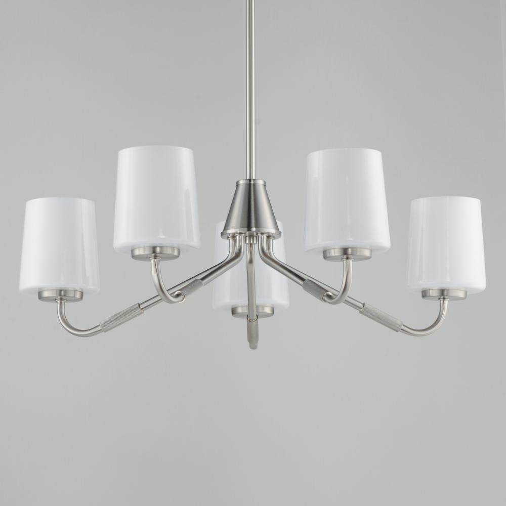 Featuring knurled rod details, this lighting collection brings a modern industrial edge to any space. Available in a range of sizes for chandeliers and two styles of bath vanity lighting, it offers versatility for different design needs. Offered in Matte B