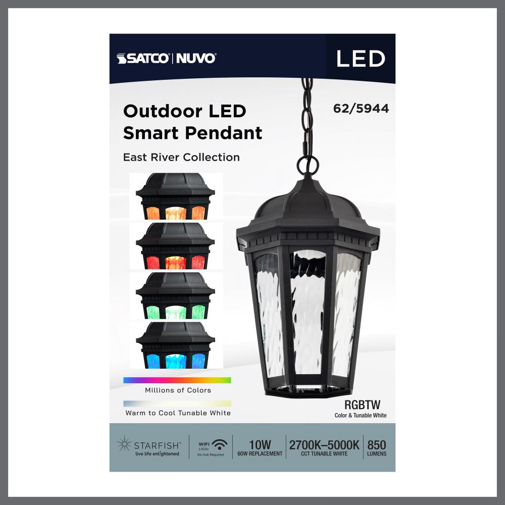 East River Collection; 1 Light Outdoor Hanging Fixture; LED; SMART - Starfish RGBTW; CCT Selectable;
