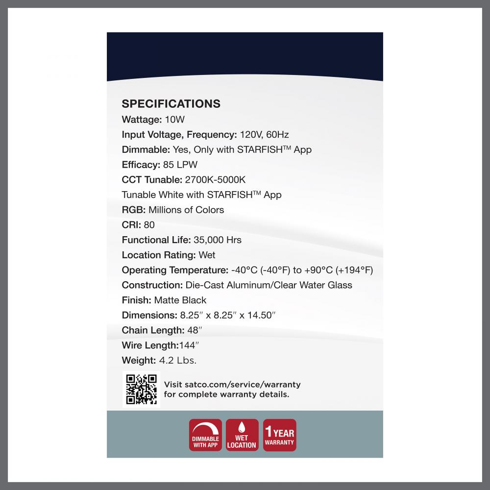 Integrated LED featuring 10 watts with the SMART Starfish App, featuring RGB and Tunable White, and CCT Selectable, 850 lumens, 2700-5000K and 80 CRI