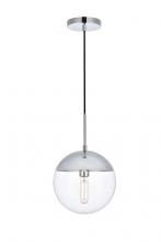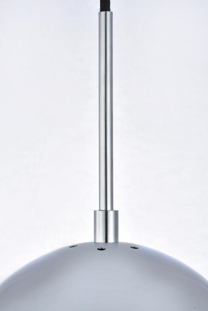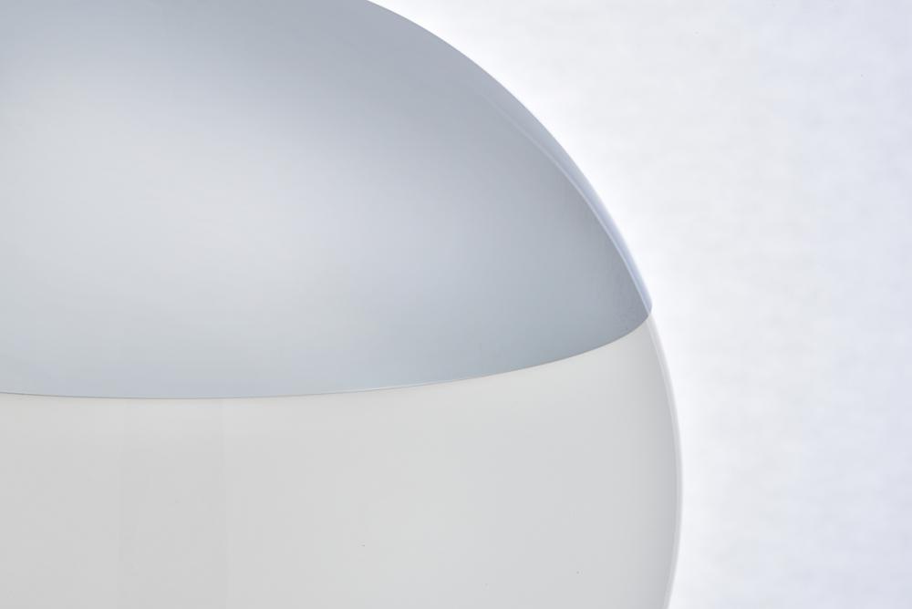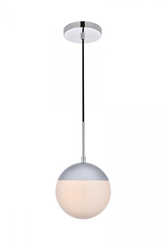 Refined style with a practical design, Eclipse hanging pendant lamps bring cosmopolitan sophistication anywhere, especially to an entryway, office, bathroom, bedroom, or kitchen. The smooth iron frame features a disk-shaped canopy and comes in a chrome finish. An adjustable black cord allows you to vary the hanging height from 16 to 63 inches. A touch of color on top of the frosted white spherical glass shade brings character to this classic style. Living in the big city has never been this easy.