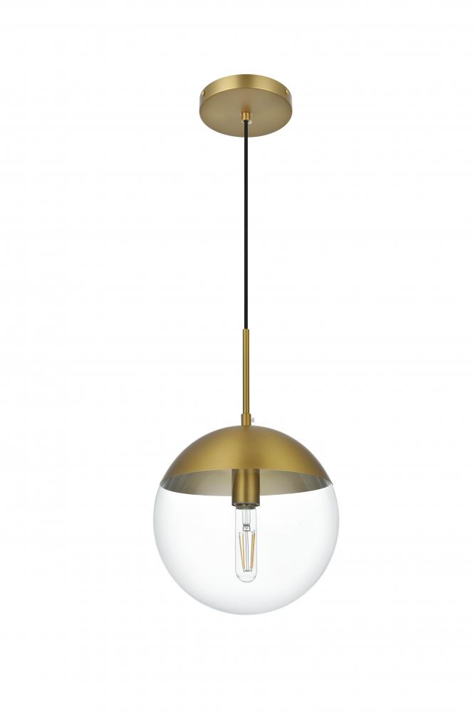 Clean lines and modern whimsy--that's the Eclipse Collection of pendant lamps. Its single light makes it perfect for any small apartment or room space, but its also a perfect addition to any larger rooms that requires illumination, such as a dining room or living room. Available in a satin gold, black, chrome, or brass finish with either a round clear or frosted white glass shade, it won't be too hard to fit this versatile lighting fixture in your home (light bulbs not included).