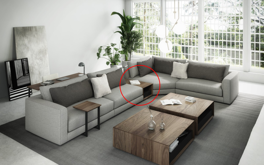 Made from solid walnut and walnut veneer, Edward coffee tables are elegant and functional. They have two drawers, which are lacquered with your choice of color. Thanks to hooks that slide under the structure, they can be integrated into a configuration of sectional sofas of the same name.