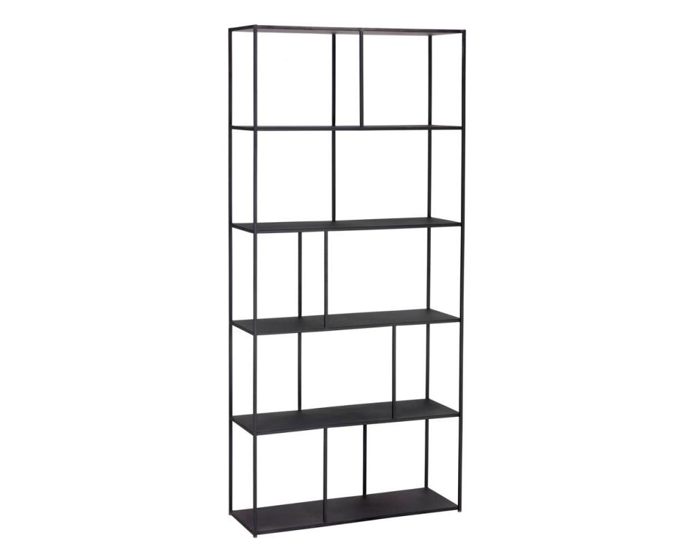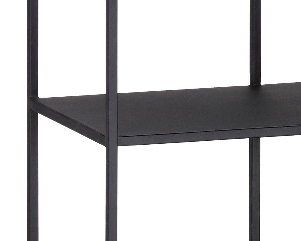 Add style and warmth to living and office spaces with this well-designed iron bookcase in a matte black finish. Can be placed in pairs or multiples for added impact and functionality. Also available in a smaller size. Anti-tipping kit included.
