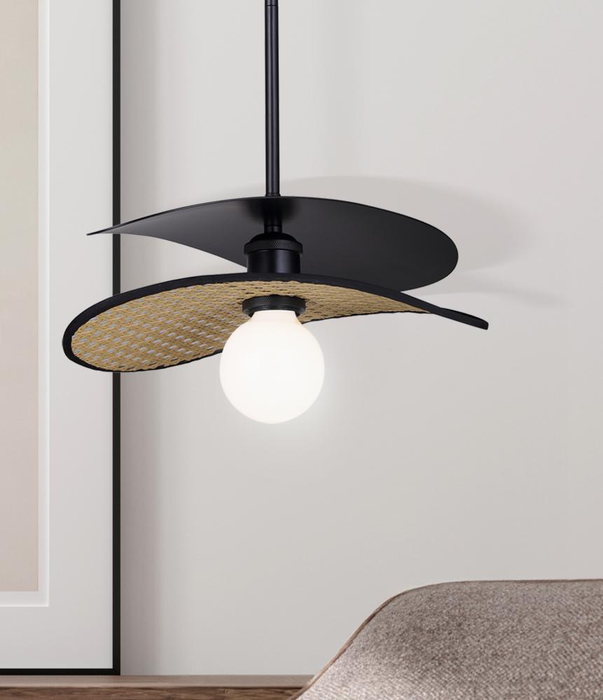 ELODIE, IPL2181B01BKP, MBK + Plastic Rattan Color, 1 Lt Rod Pendant, 60W Type G40, 13.75inch W x 7.125 - 54.875inch H x 7.875inch D