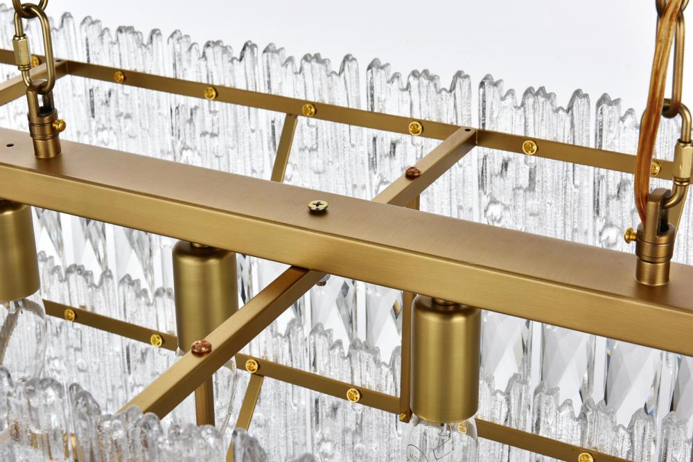 The combination of clear crystals and textured glass creates a sophisticated light play, perfect for setting an elegant mood.