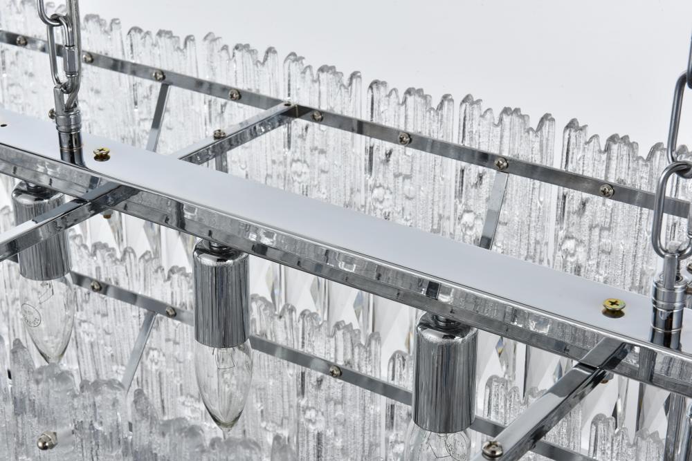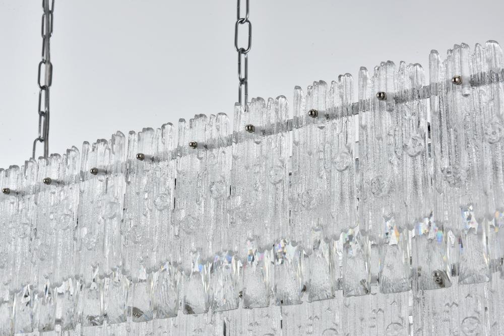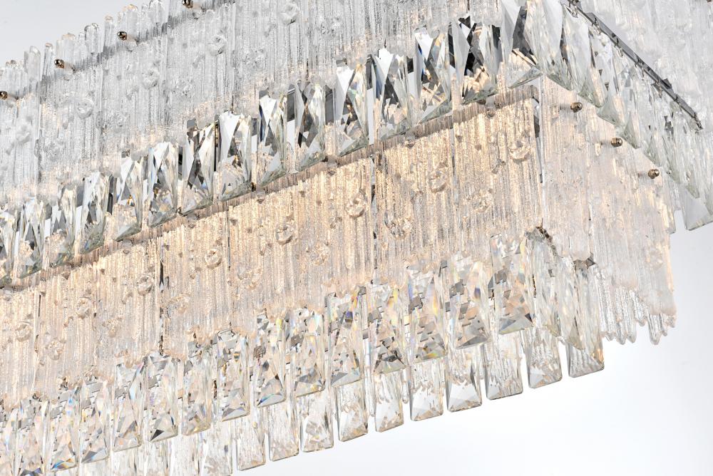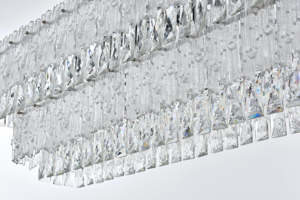 The combination of clear crystals and textured glass creates a sophisticated light play, perfect for setting an elegant mood.