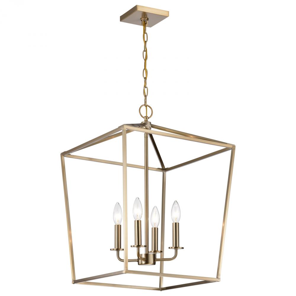 A stylish lighting fixture that combines transitional elements with minimal design, Emma is a knockout. The warmth of the three, lovely finishes to choose from on the simple framework is highlighted by four candelabra bulbs, exuding elegant charm without e