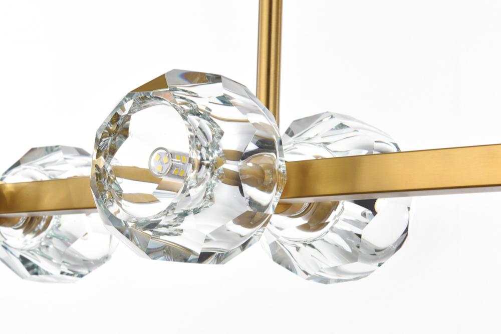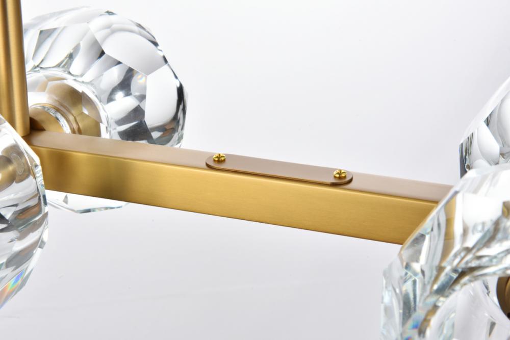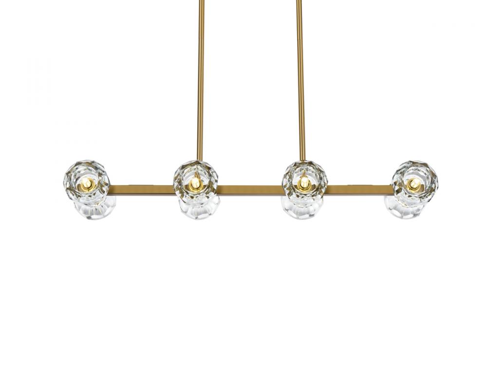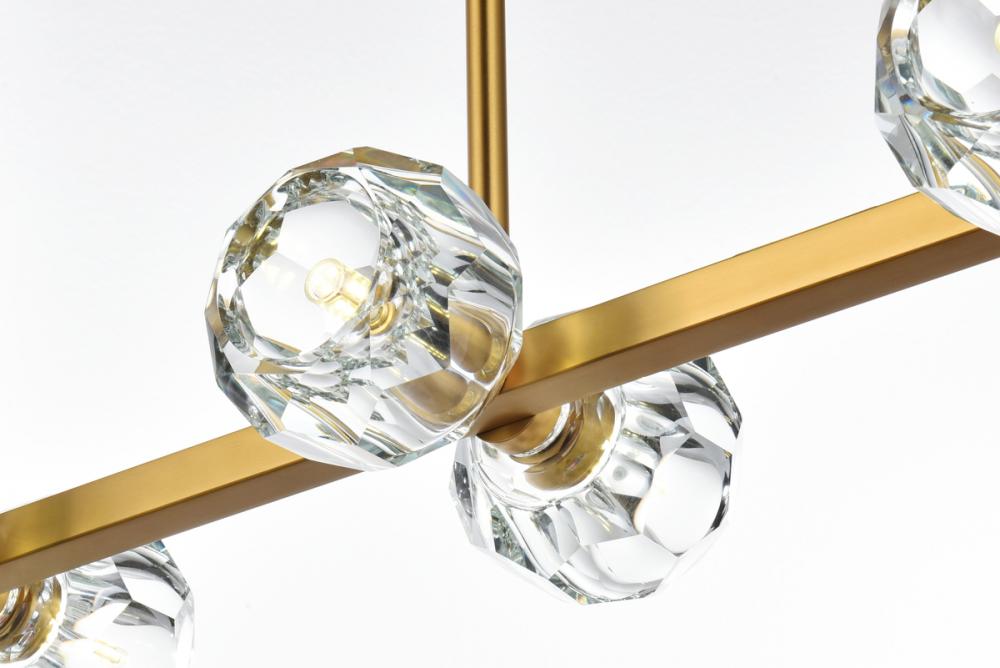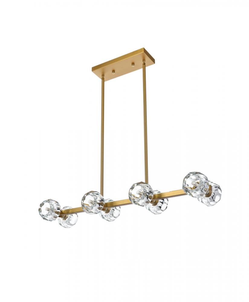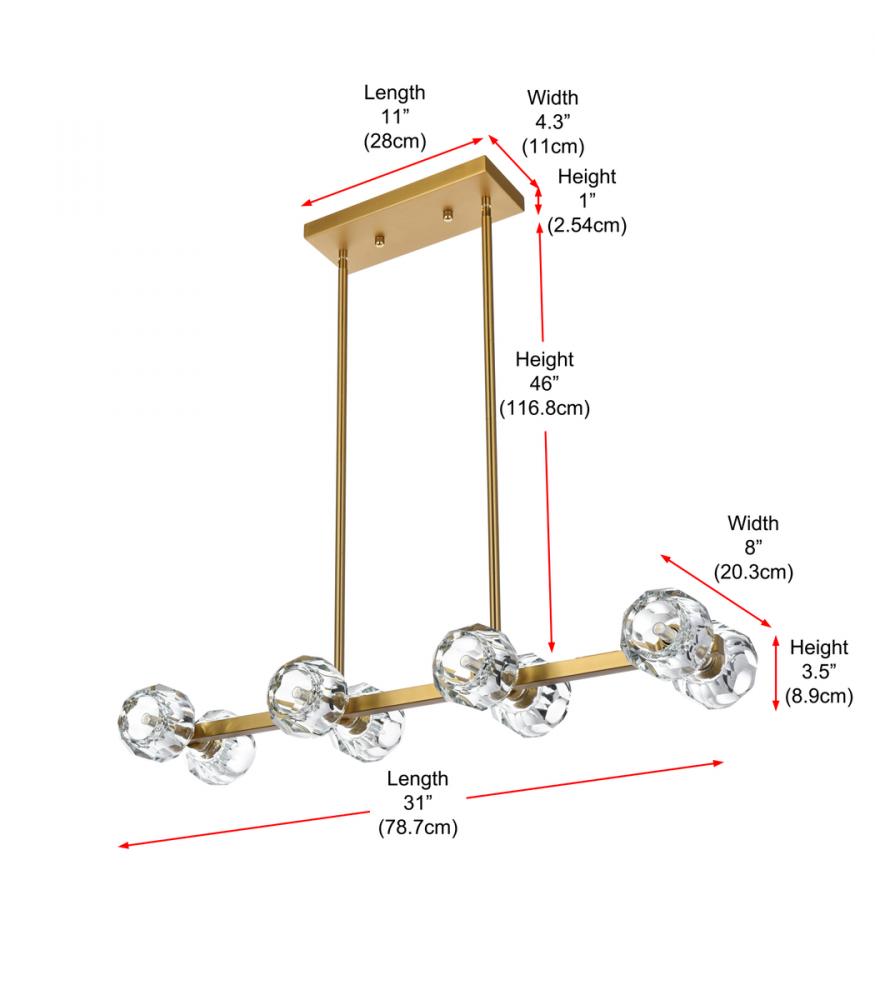Eight lights adorned with faceted crystal glass shades bring a luxurious and dazzling radiance to your space, creating an atmosphere of timeless elegance.
