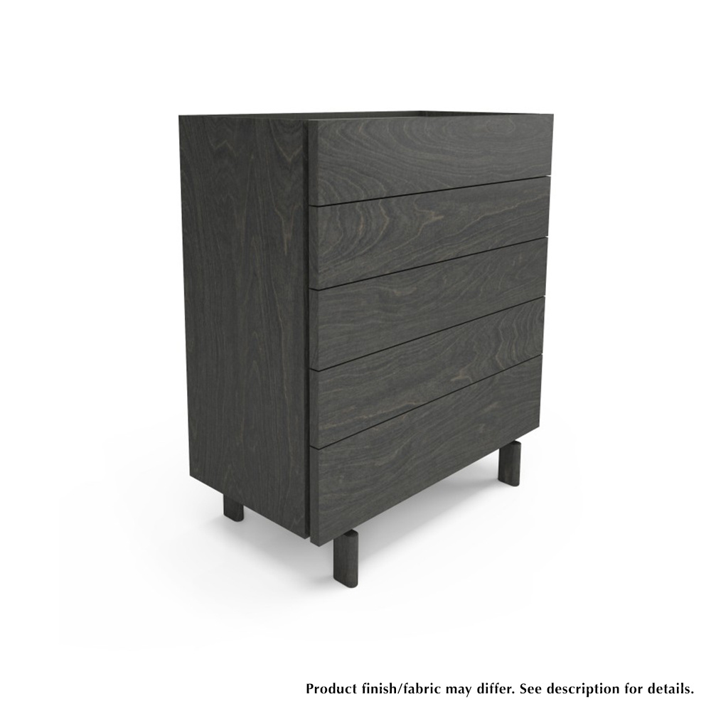 The Ethan 5 drawer chest is made of solid birch and birch veneer. It features a slightly recessed base, to add a touch of originality.