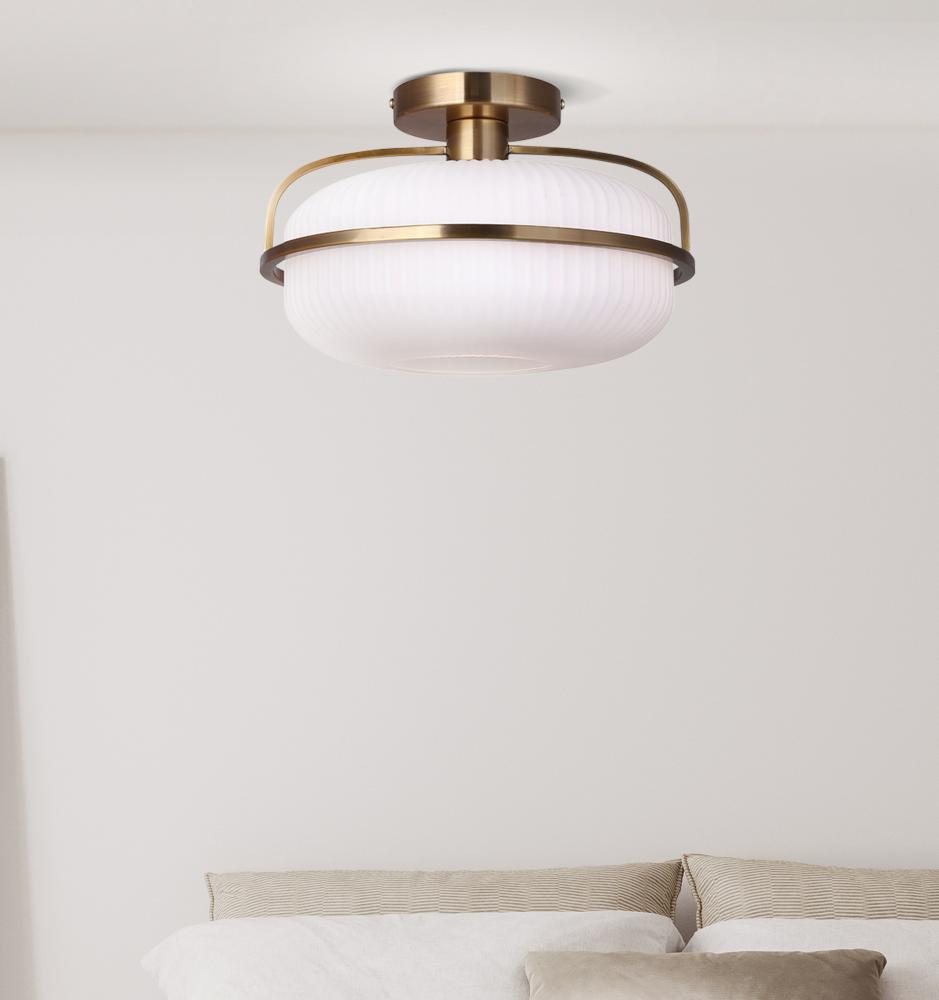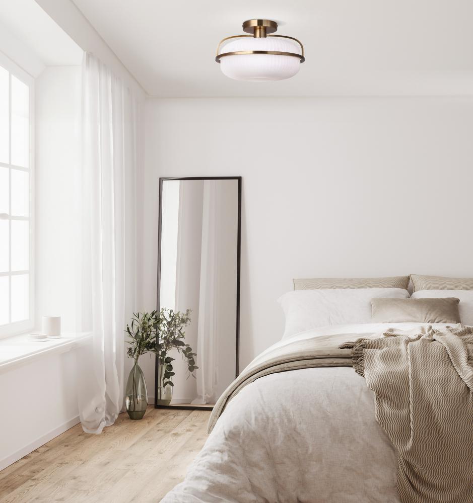 EVE, ISF2190B01GD, 1 Lt Semi-Flush, Flat Opal Ribbed Glass, 60W Type A, 12inch W x 8.25inch H, Easy Connect Included