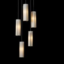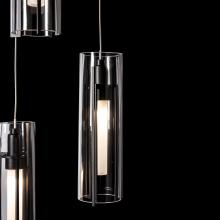 The Exos Collection has a new addition with five cascading pendants clustered on a round multi-port canopy. Individual pendant lengths are customizable to suit the space, making this Exos Glass 5-Light pendant and easy choice. With a substantial range of cable length, this Exos Glass ceiling pendant could make a dramatic statement as a semi-flush or as a cascading focal piece. Tall, vertical, handcrafted steel pieces embrace a glass shade in a choice of opal or clear glass, with an opal inner diffuser.