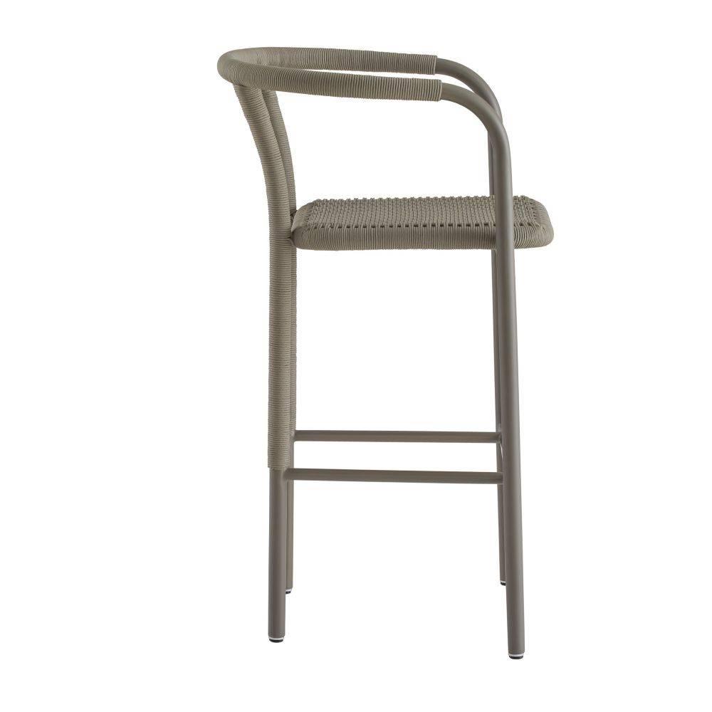 Wrapped woven details elevate the simple, bistro-style body of the Feller. The graphic nature of its aluminum form is highlighted with a tone-on-tone gray powder coat. Finished with a sturdy fossil synthetic rope seat, this contemporary bar stool makes a stylish addition to any outdoor setting.
