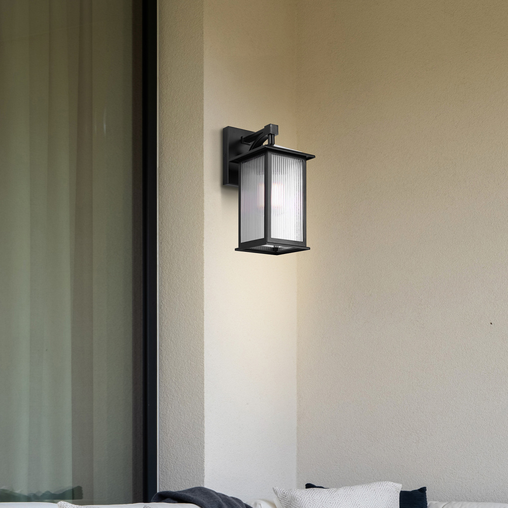 FERNIE 1 Lt Outdoor Down Light, Matte Black Finish with Clear Ribbed Glass Panels