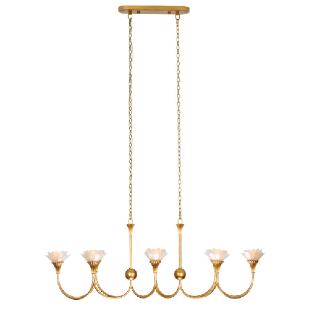 The Flora Collection showcases a botanically inspired Capiz Shell design, offering an incredibly light and airy ambiance. This elegant blend of classic and contemporary styles, reminiscent of a torch, combines premium natural materials with refined sophistication. The collection is exquisitely finished in Modern Gold and features a wooded bead columns and scalloped candle cup detail.