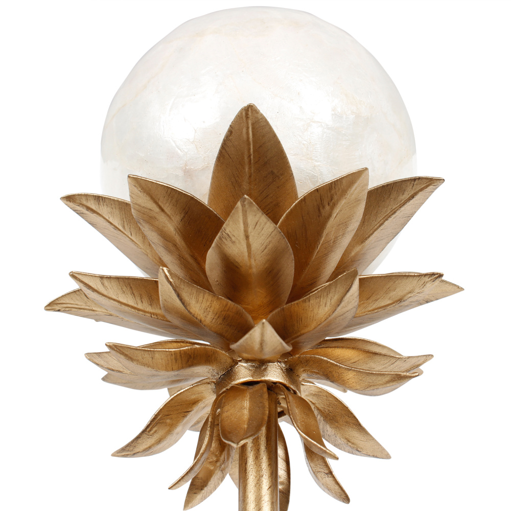 Flower Bud or GemstoneMaterial: Steel, Natural capiz resin globeFinish: Modern Gold