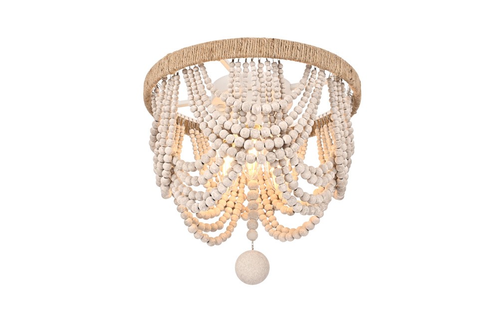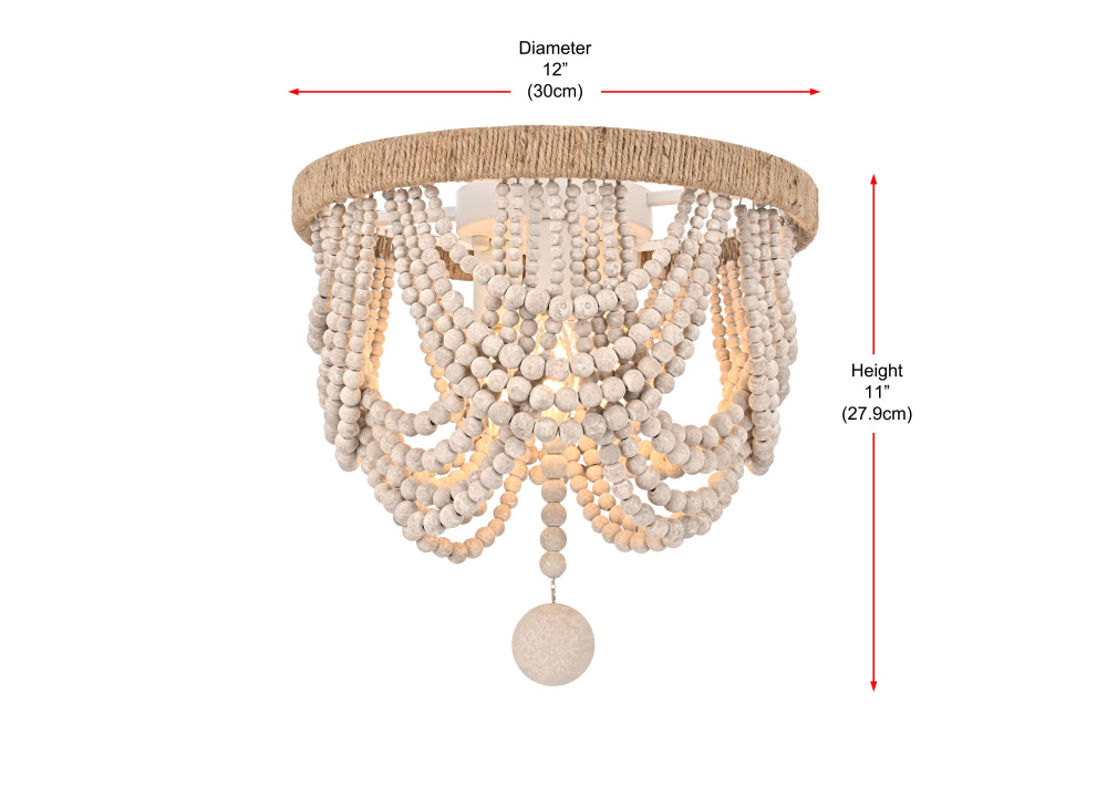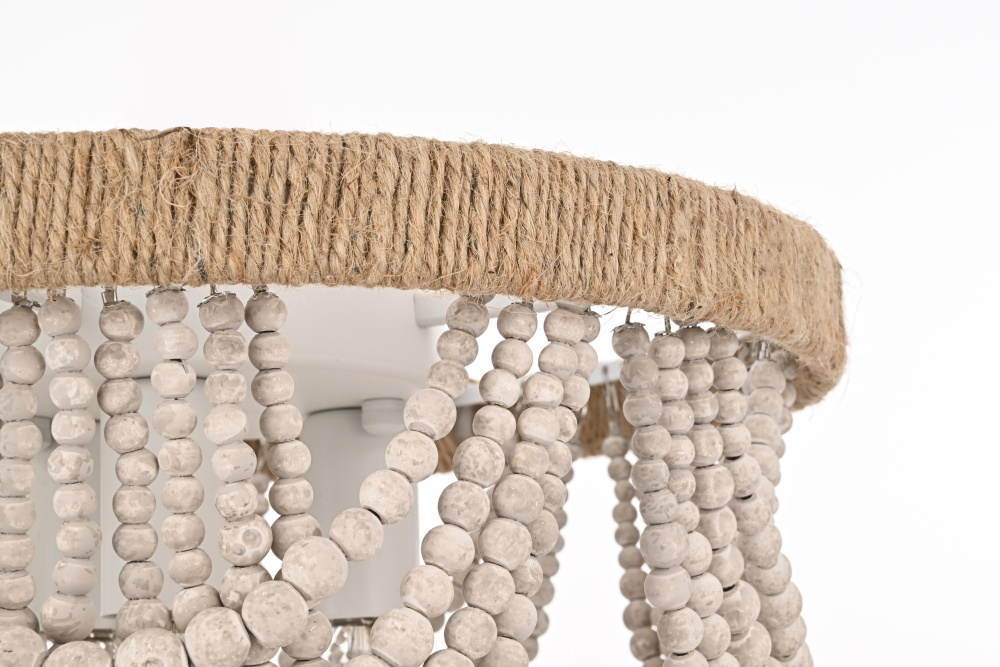 Blend of iron frame, textured rope detail, and wooden beads offers rich material depth.