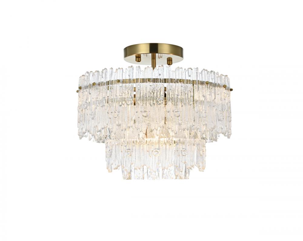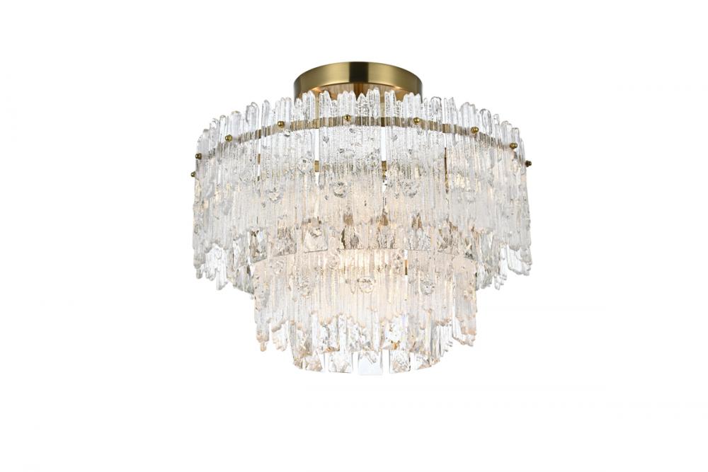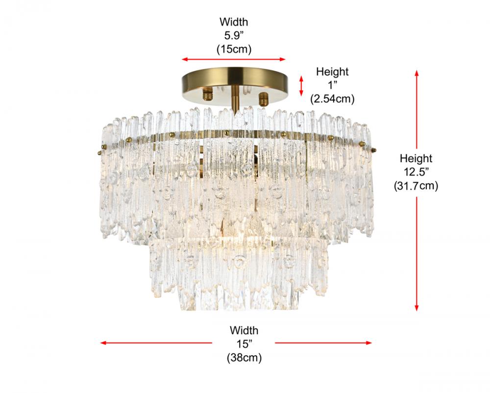 Elevate your space with this stunning 15-inch crystal flush mount, boasting four tiers and adorned with a captivating snow flower glass overlay.