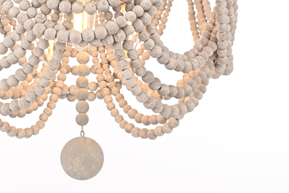 Weathered white beads cascade in elegant tiers, creating a serene, coastal-inspired focal point that brings sophisticated charm to any space.