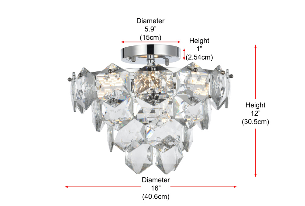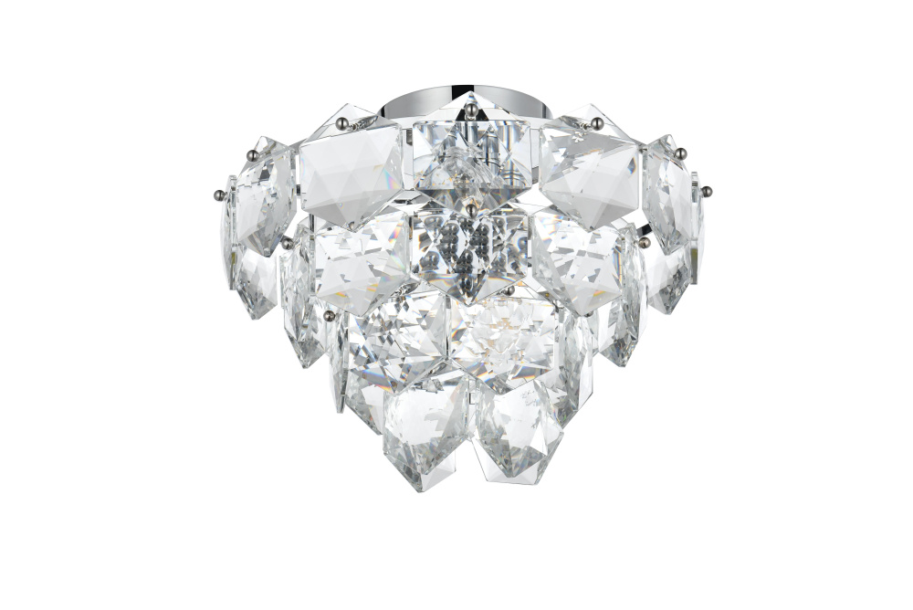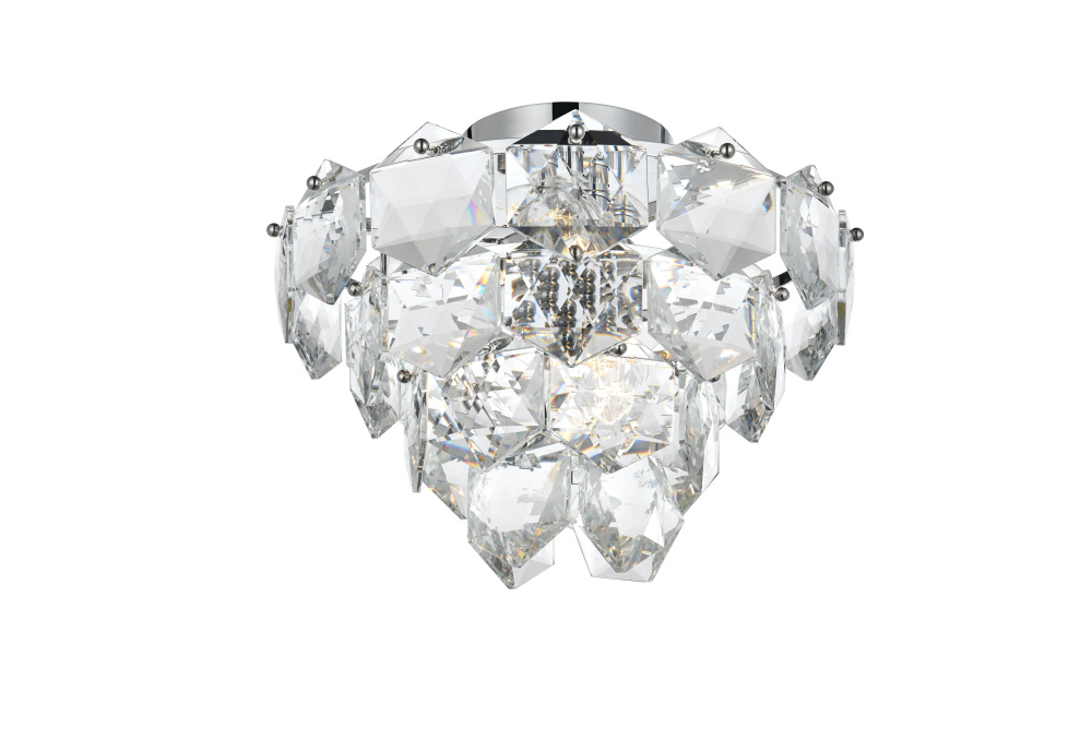 The design combines layered crystals and geometric form, transforming your ceiling into a stunning focal point.