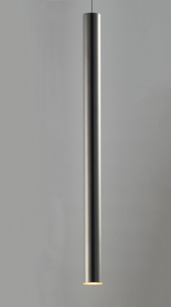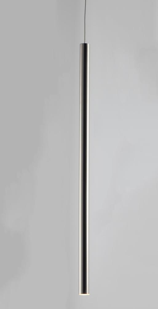 Elongated metal tubes in a variety of finishes from Rose Gold to Polished Chrome suspend from pans to create impressive sculptural statements. Each tube encase a replaceable integrated LED module while many of the ceiling pans house additional LED spots to