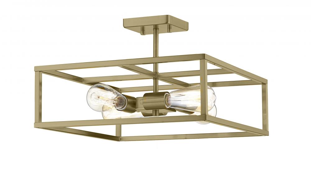 Understated and open to his surroundings, our Frank semi-flush fixture's composition is a tribute to the icons of contemporary design. The smooth sockets on his 4-bulb collective complement the simplicity of his geometric metal cage. His clean lines and openness allow the warm light of Frank to shine through, making him a natural partner to enhance the environment of any stylishly modern interior.
