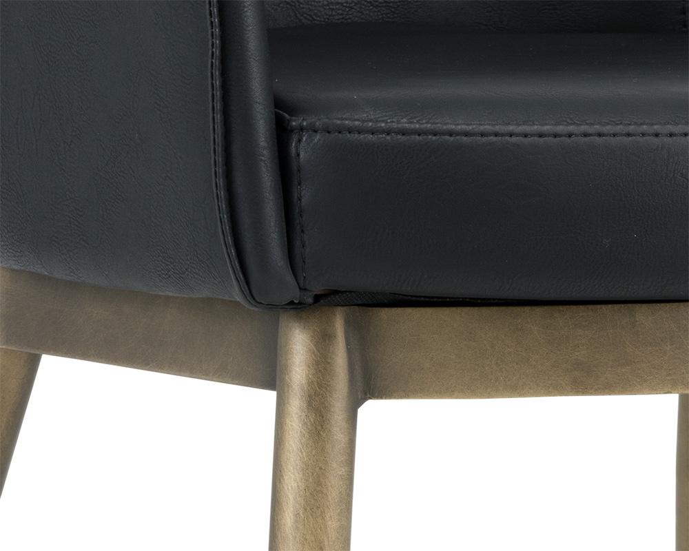 This compact barrel back armchair will add rustic and mid-century modern styling to dining and living spaces. Handle With Care: This design has been crafted with faux leather. Faux leather is manufactured to reflect the natural characteristics of leather; as such, colour variations, markings, wrinkles, grooves, and light scratches are appreciated characteristics. No two pieces will be alike.