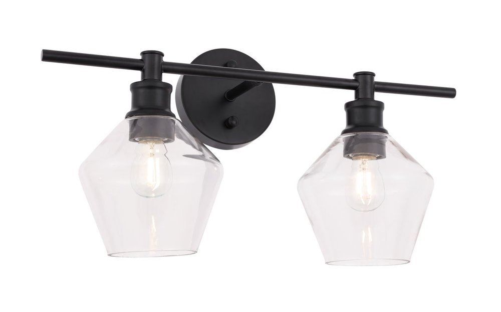 The Gene Collection of lights will be sure to have your guests admire your modern sense of style with the beautiful simplicity of its shape and form. The clean lines of the rhombus shaped shades create the juxtaposition of intricate simplicity, achieving a style that has both form and function. This wall lamp can be oriented facing up or down, but will always illuminate your room. Available in a brass, chrome, or black finish with either a clear or frosted rhombus glass shade, it is the perfect wall lamp to enhance your bathroom, foyer, or hallways, allowing you to always live in sleek contemporary style (light bulbs not included).