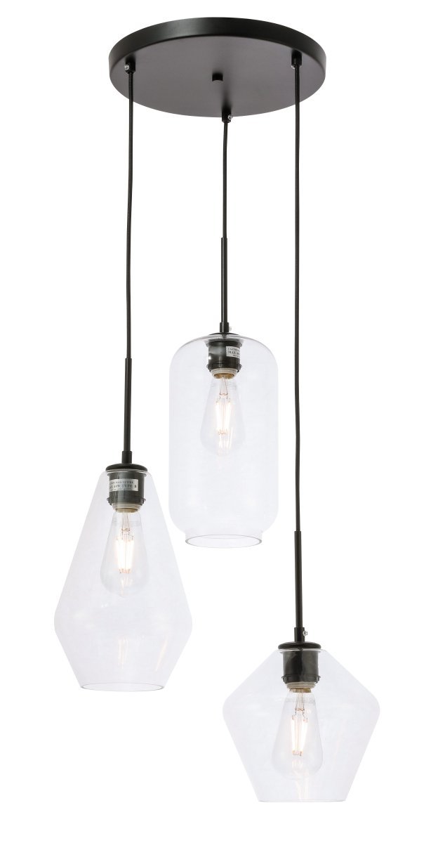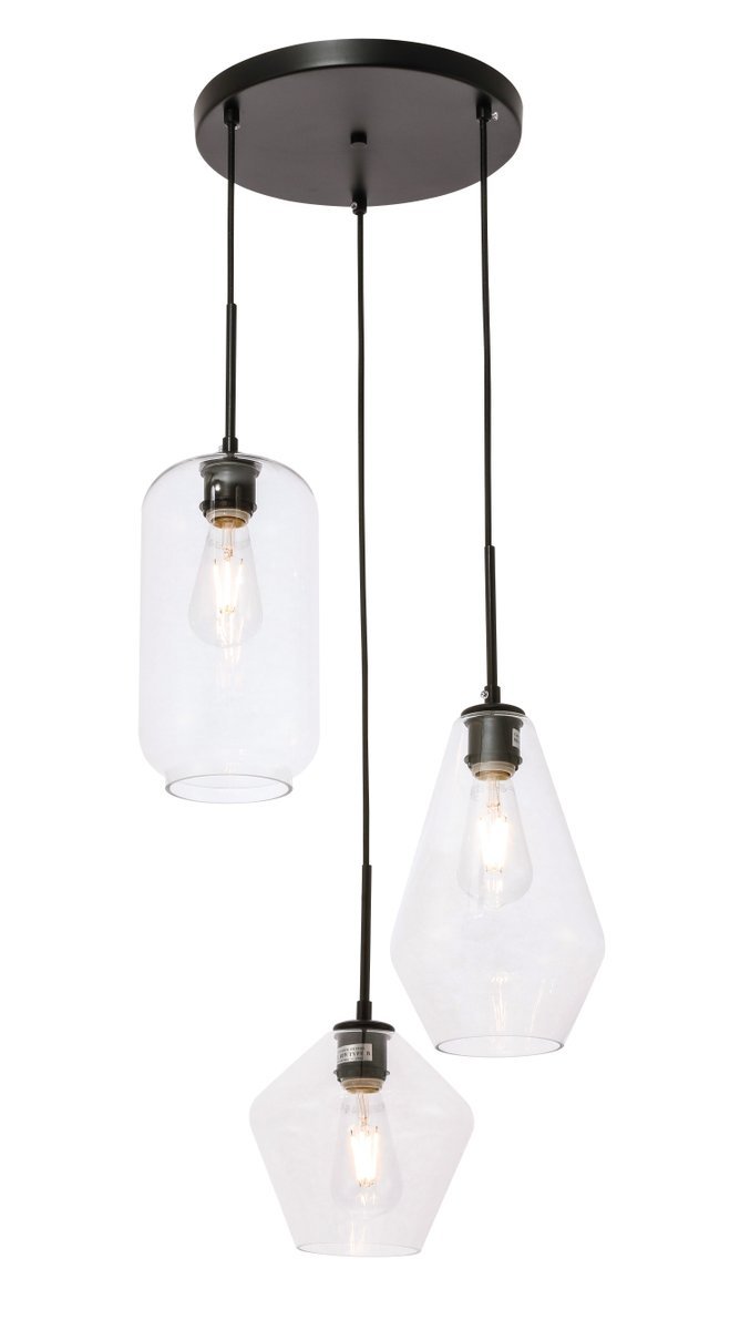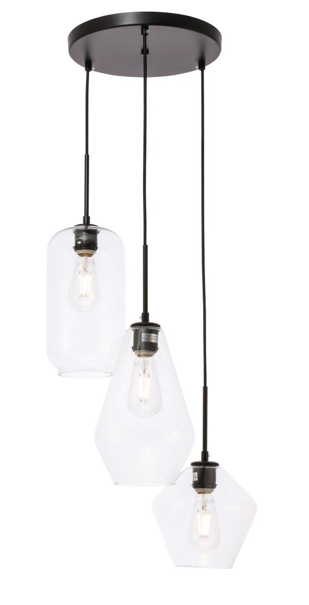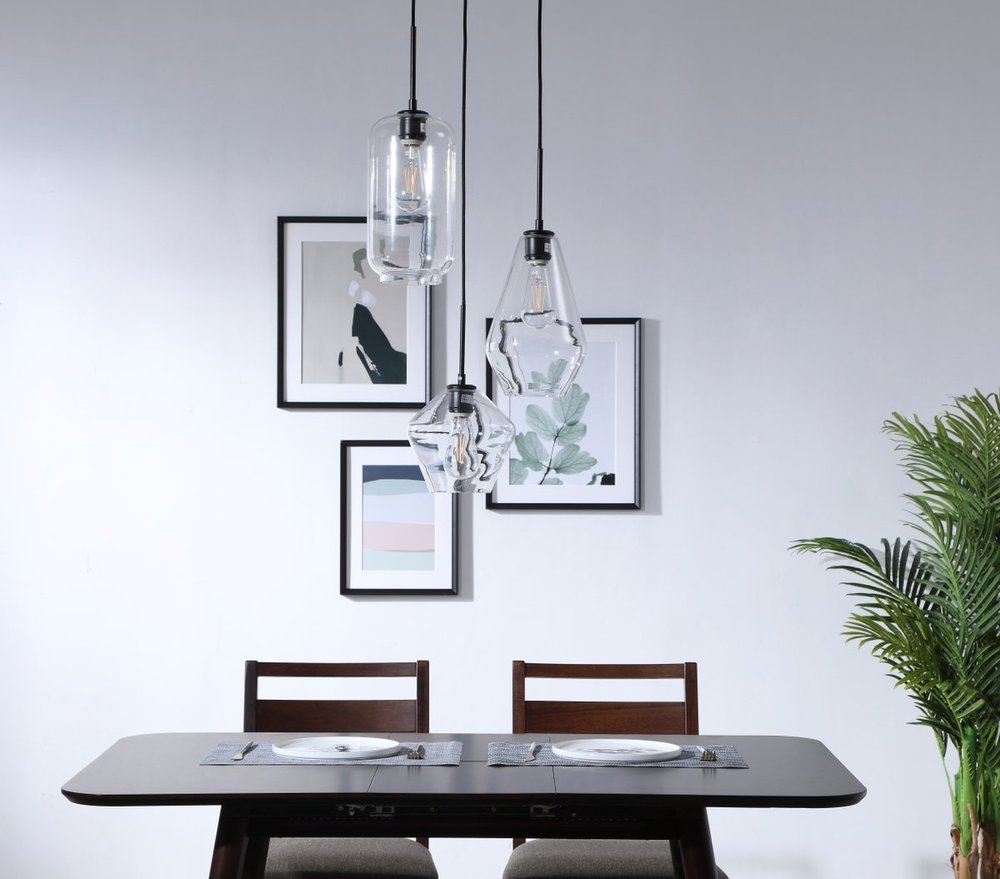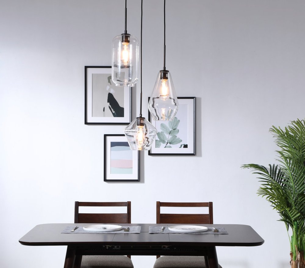 The Gene Collection of lights will be sure to have your guests admire your modern sense of style with the beautiful simplicity of its shape and form. The canopy supports three pendant lights that can be adjusted to different heights in order to create dramatic levels of lights and shadows. The pendant's clean lines created by the cords and diamond shaped shades makes this the perfect lighting addition to any home that is in need of a chic modern flair. Available in a brass, chrome, or black finish, with either a clear or frosted diamond glass shade, enhance your dining room, living room, or bedroom with the Gene Collection hanging pendant and live in sleek contemporary style (light bulbs not included).