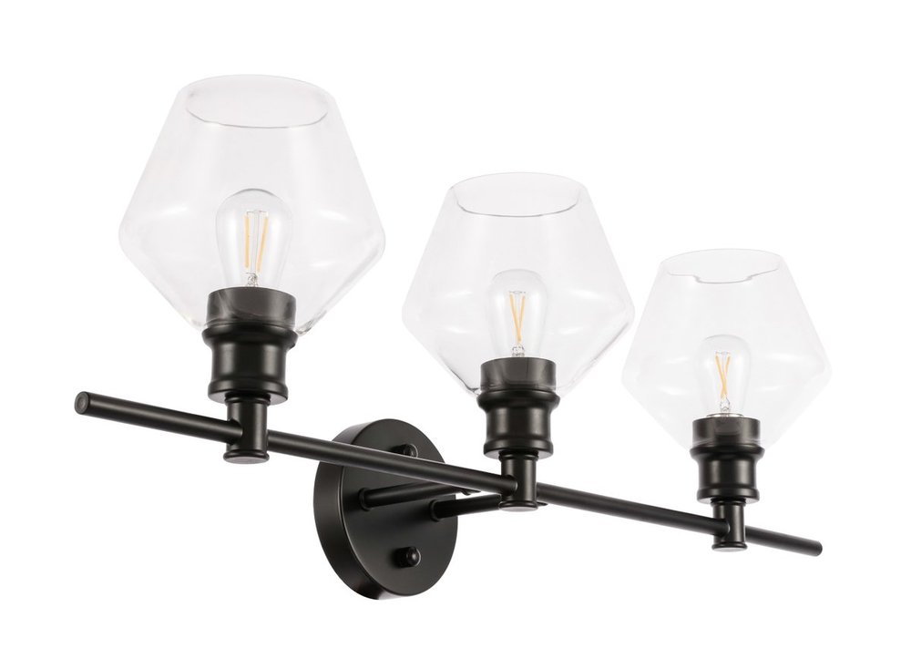 The Gene Collection of lights will be sure to have your guests admire your modern sense of style with the beautiful simplicity of its shape and form. The clean lines of the rhombus shaped shades create the juxtaposition of intricate simplicity, achieving a style that has both form and function. This wall lamp can be oriented facing up or down, but will always illuminate your room. Available in a brass, chrome, or black finish with either a clear or frosted rhombus glass shade, it is the perfect wall lamp to enhance your bathroom, foyer, or hallways, allowing you to always live in sleek contemporary style (light bulbs not included).