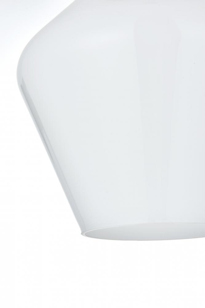 Features a frosted white glass shade, delivering a soft, diffused light for a warm, inviting atmosphere.