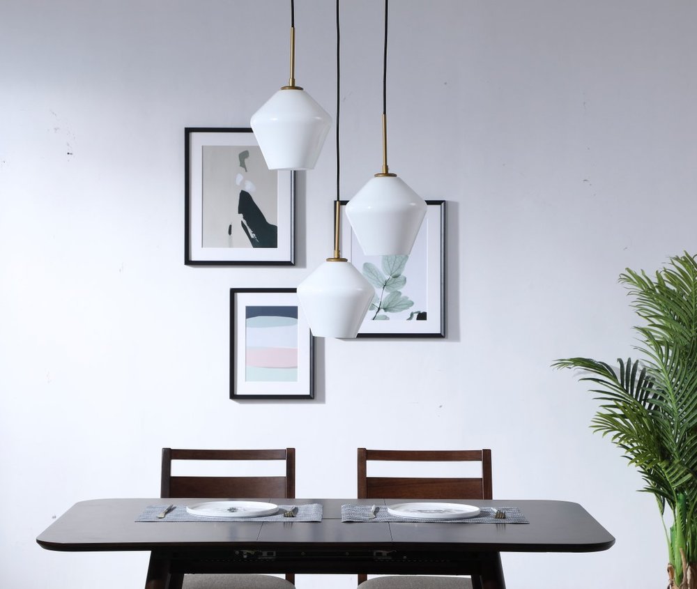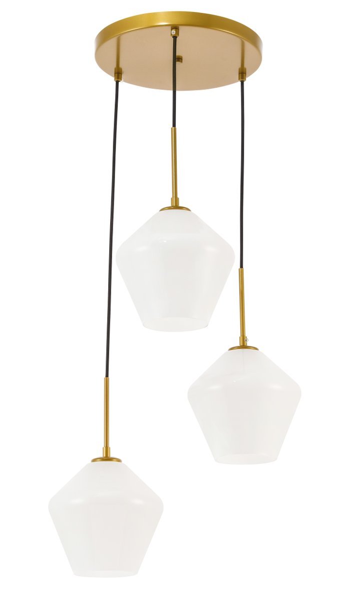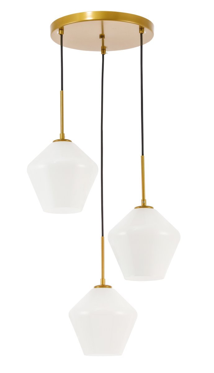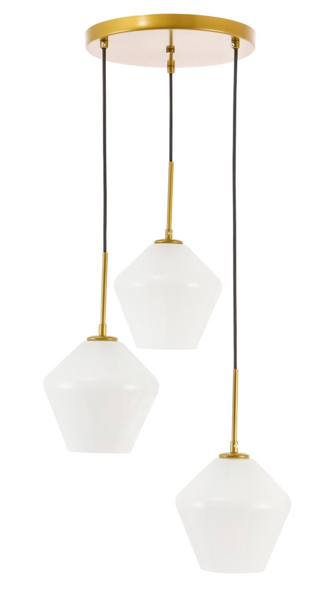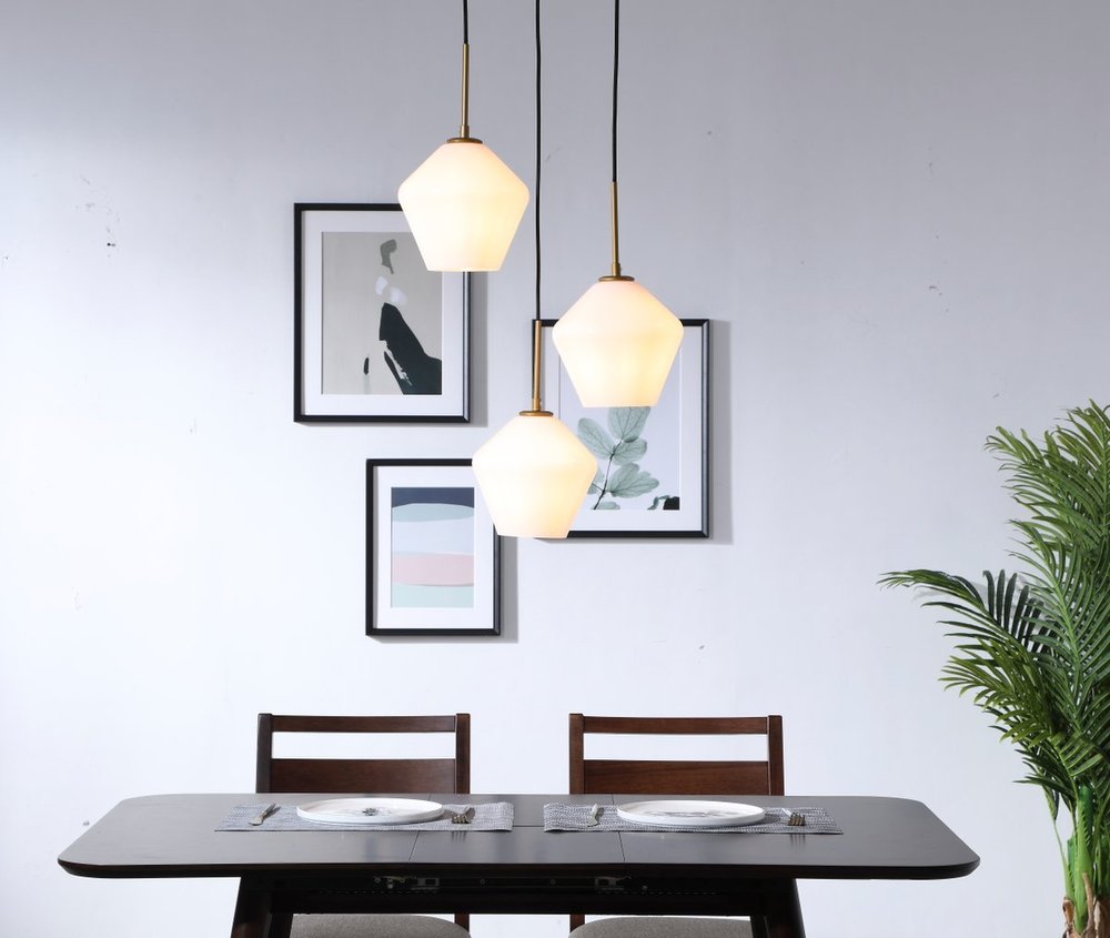 The Gene Collection of lights will be sure to have your guests admire your modern sense of style with the beautiful simplicity of its shape and form. The canopy supports three pendant lights that can be adjusted to different heights in order to create dramatic levels of lights and shadows. The pendant's clean lines created by the cords and diamond shaped shades makes this the perfect lighting addition to any home that is in need of a chic modern flair. Available in a brass, chrome, or black finish, with either a clear or frosted diamond glass shade, enhance your dining room, living room, or bedroom with the Gene Collection hanging pendant and live in sleek contemporary style (light bulbs not included).