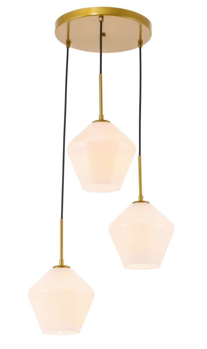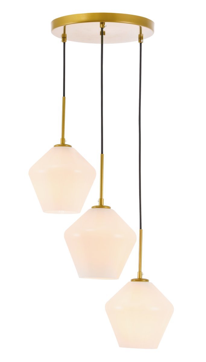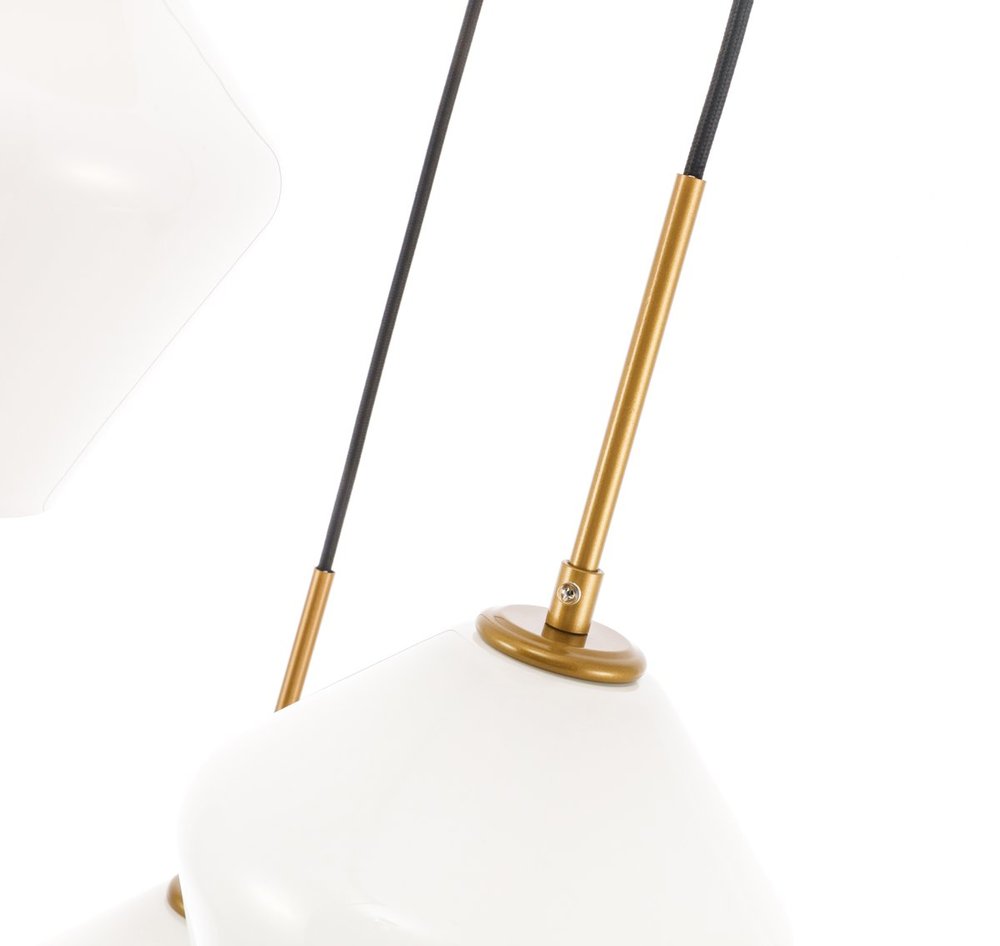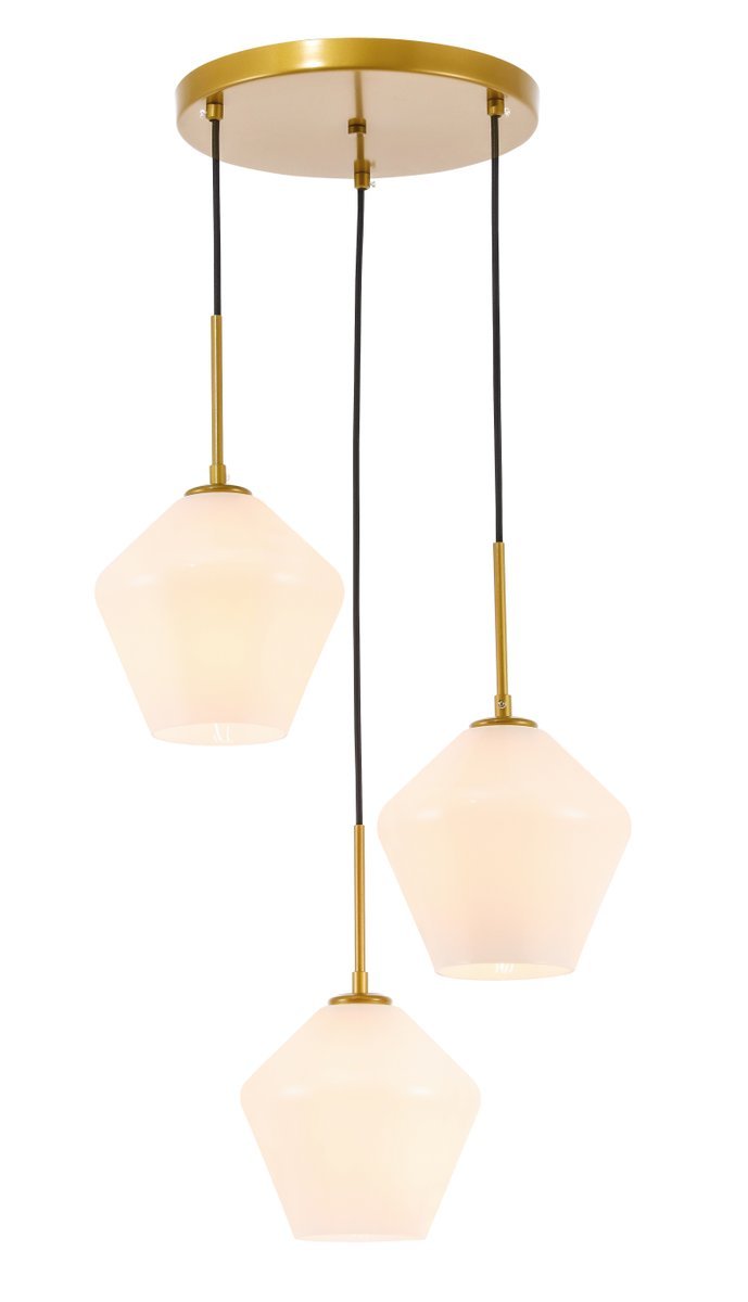 The Gene Collection of lights will be sure to have your guests admire your modern sense of style with the beautiful simplicity of its shape and form. The canopy supports three pendant lights that can be adjusted to different heights in order to create dramatic levels of lights and shadows. The pendant's clean lines created by the cords and diamond shaped shades makes this the perfect lighting addition to any home that is in need of a chic modern flair. Available in a brass, chrome, or black finish, with either a clear or frosted diamond glass shade, enhance your dining room, living room, or bedroom with the Gene Collection hanging pendant and live in sleek contemporary style (light bulbs not included).