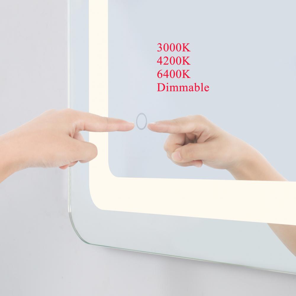 The led mirror features a built-in touch sensor that allows users to control various functions and settings such as adjusting lighting, changing color temperature, or powering on or off.
