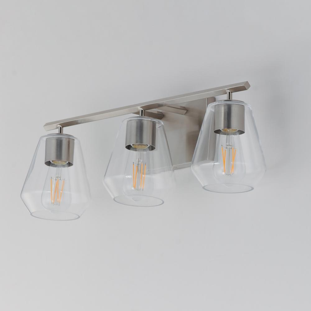 Crystalline clarity meets modern structure in the Geode collection. Inspired by the faceted symmetry of natural mineral formations, each clear glass shade is cut in an angular form that plays with light and shadow. The bold, geometric silhouette feels effo
